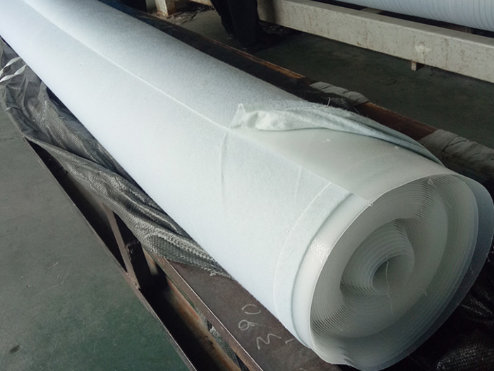 防渗复合土工膜:复合土工膜是用土工织物与土工膜复合而成的不透水材料,它主要用于防渗,复合土工膜分为一布一膜和两布一膜,抗拉、抗撕裂、破等物理力学性能指标高,能满足水利、市政、建筑、交通、地铁、隧道等土木工程需要。由于其选用高分子材料且生产工艺中添加了防老化剂,故可在非常规温度环境中使用。